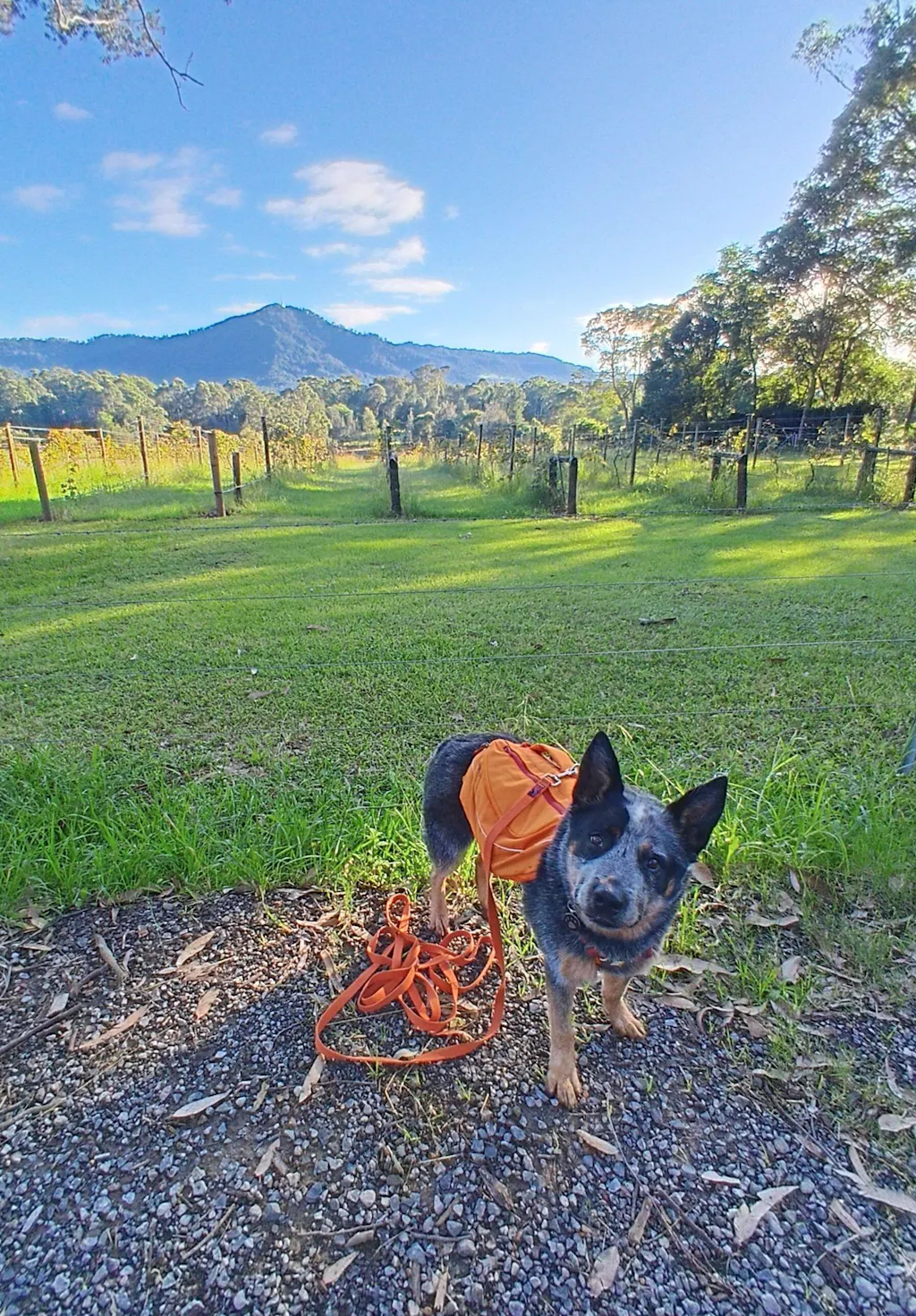 Perfect fit for my super active kelpie. Love being able to clip on the front of the harness.